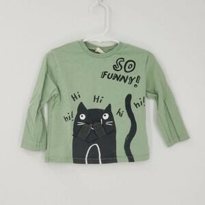 Zara Baby Black Cat Graphic Crew Neck Long Sleeve Top Green Size 9-12 Months