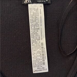 This Zara black bodysuit features a timeless design with clean lines and a matte finish. Made from a stretchy, form-fitting material, it offers versatility with varying sleeve lengths and necklines, making it perfect for layering or wearing on its own.