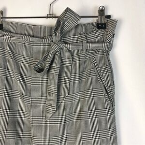 Zara Black & White Houndstooth Plaid High Rise Paperbag Trouser Pants S