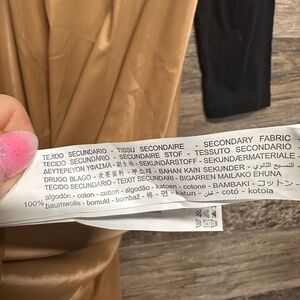 This elegant Zara dress features a ribbed black top with long sleeves and a classic crew neck, seamlessly transitioning into a pleated tan maxi skirt. Perfect for cocktail occasions, the A-line silhouette offers a graceful and stylish appearance.