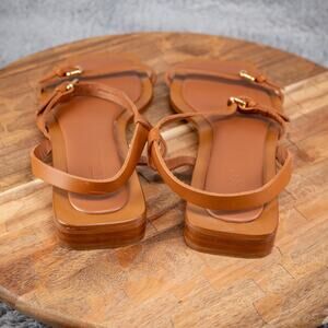Zara Brown Leather Criss Cross Sandals Gold Buckle Size 39