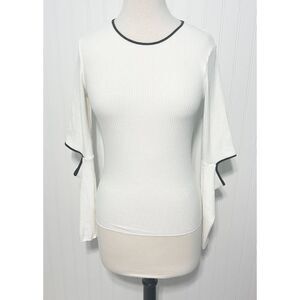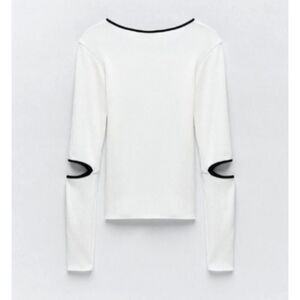 Zara Cold Elbow Cutout Ribbed Sweater Crewneck White Black Trim Women's Small