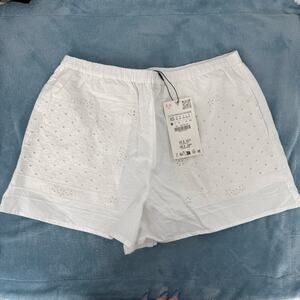 Shorts with a mid elastic waistband. Side hidden in-seam pockets. Tonal embroidery.