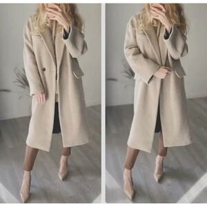 Zara Double Breasted herringbone print Beige Lapels Coat Medium