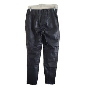 Zara Faux Leather High Rise Zipper Ankle Black Pants Women Size L