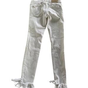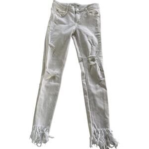 Zara Jeans Women 4 White Raw Frayed Hem High Rise Skinny Denim Distressed