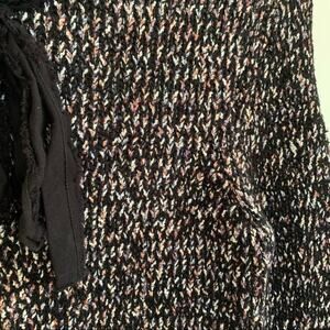 Zara Knit Black Pink Boucle Fringe Bow Neck Sweater Large Bloggers Fav