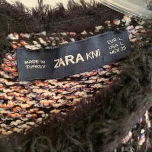 Zara Knit Boucle Fringe Bow Neck Sweater G1457