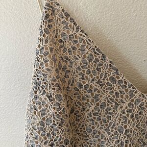 Zara Lace Strappy Tank Slip Open Back Mini Dress Grey Beige Size M