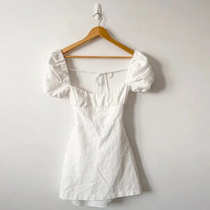 Zara Linen Blend Balloon Sleeve Strappy Back Mini Dress White Blogger Fav Sz M