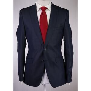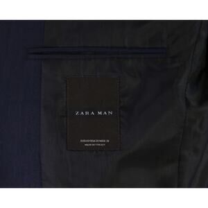 Zara Men's Navy Blue Sharkskin Shiny 2-Btn Slim Fit Suit 38R