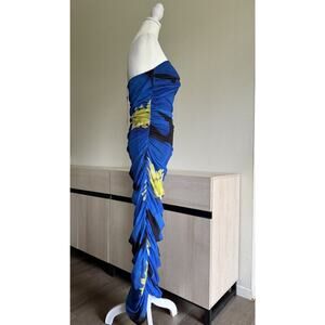 Zara Mesh Strapless Blue Black Yellow Floral Print Maxi Dress Size M NWT #3