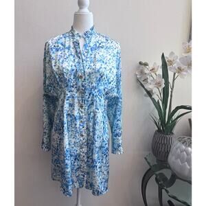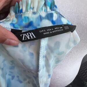 Zara Mini Satin Multicolor Button Down Dress Large Long Sleeve Women's Size Lg