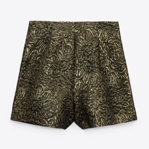 Zara NWOT Gold Black High Waist Brocade Micro Shorts Size XS