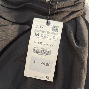 This chic black mini skirt from Zara features a stylish bubble silhouette with ruched detailing, making it perfect for work or cocktail events. Its sleek design and deep black color offer a versatile and sophisticated look, ideal for dressing up or down. Crafted with attention to detail, this skirt is a must-have addition to any wardrobe.