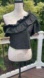 Zara RUFFLED ASYMMETRIC TOP BLACK EYELET Size L