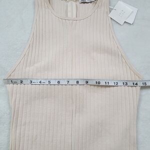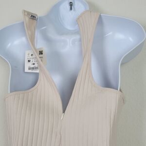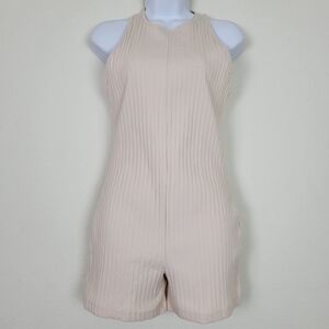 Zara Racerback Ribbed Knit Oatmeal Cream Colored Zippered Back Sleeveless Romper.