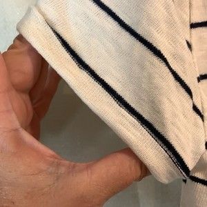 Part of the Fall/Winter collection, this Zara Trafaluc striped T-shirt features a modern graphic patch that reads "We Know What to Wear" on the front. Crafted in soft cotton with navy horizontal stripes, it includes subtle side slits for added comfort and style. New with tags, size small. color is like a bone white