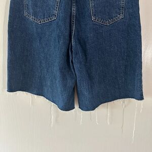 Zara Womens 70s Bermuda Blue Denim Shorts Jorts Frayed Hem Size 4
