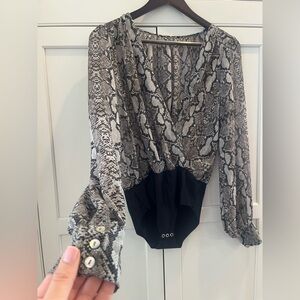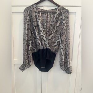 Zara women sheer bodysuit snake print size S grey black