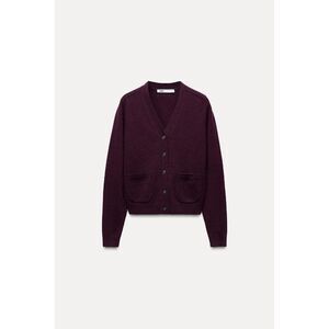 Zara Womens Sweater Medium Aubergine V-Neck Wool Basic Cardigan 2893/110 NWT