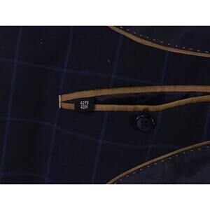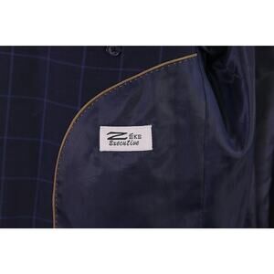 Zeke Executive Navy Blue Windowpane 2-Btn Wool Suit Portly 42S
