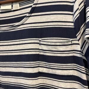 Experience the timeless elegance of the Zenergy Chico’s Maxi Dress, perfect for women who appreciate a blend of classic style with a nautical twist. This dress features a smart round neck, short sleeves, and a convenient pullover closure, ensuring a comfortable fit for regular size XL. Its striking blue and white striped pattern is a nod to seaside charm, making it an ideal choice for beach outings or tropical cruises.