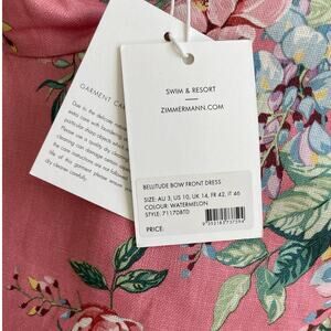 Zimmermann Bellitude Bow Front Pink Floral Linen Mini Dress Size 3/US 10