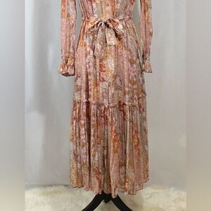 This romantic Zimmerman Kaleidoscope Tubular midi-dress gathers at the ruffled neck creating soft pleats at the bodice. Adorned with a patchwork-inspired print, this look is finished with flared cuffs. Come with slip dress and waist belt.