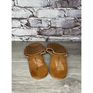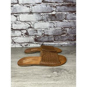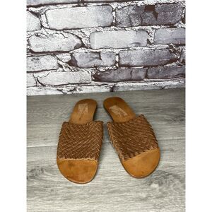 Selling almudena miliani Brown Leather Weaves Woven Slides Sandals Women’s Sz 9M US/40EU