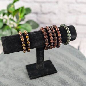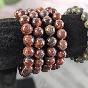 beaded stretch bracelets red, tigers eye, jade beautiful rich colors