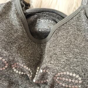 bebe Sports Bra GRAY Seamless w Trim Bling SILVER DOT LIMITED EDITION
