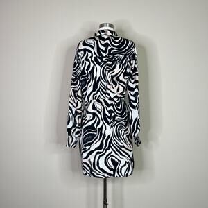by Anthropologie | Abstract Graphic Zebra Print Black White Draped Mini Dress 14
