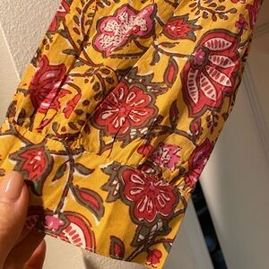 dRA Los Angeles, by Anthropologie, maxi floral dress. It has been gently used and is an excellent condition. It is 100% cotton has buttons that go all the way up to the neck but don’t have to go that high. It is belted and has two pockets. It is lightweight and comfortable. The sleeves are about 2/3 in length and button and have some pretty pleats. thank you for considering my beautiful dress.🌷
