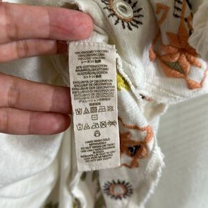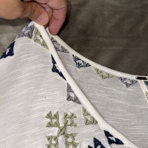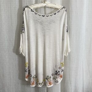 free people L Ivory Navy Peach Green Lace up Oversized Embroidered Peasant Top