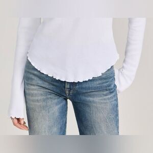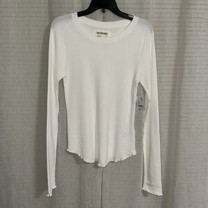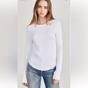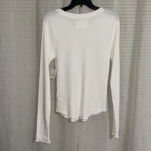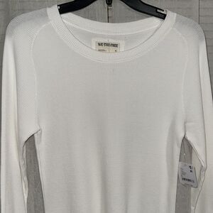 free people M Easy Does It White Crewneck Waffle Knit Long Sleeve Thermal