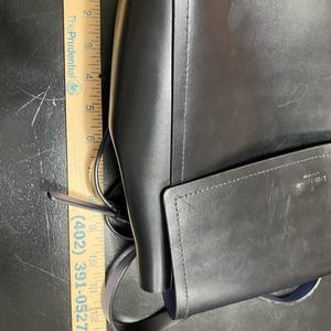 Black leather kate spade backpack. Bag itself is in really great shape, inside is very clean. Straps have come apart in a few areas and have been fixed at a shop. Logo has faded on outside, but imprint is there.