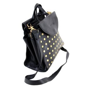 kate spade NYBLACK GENUINE LEATHER GOLD POLKA DOT SHOULDER BAG X-BODY SATCHEL HANDBAG PURSE