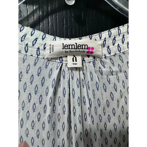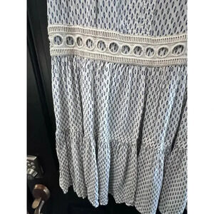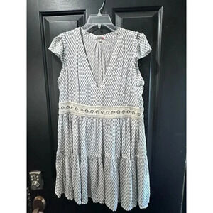 lemlem Women's Wibi V-Neck Lace Trim blue white Short Mini Dress Size Large