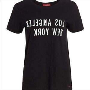 From the Midnight Rambler Collection. New York Los Angeles Slogan t-shirt with distressed reverse lettering. Roundneck Short sleeves Pullover style Cotton Machine wash Made in USA Size small New SIZE & FIT About 24.75" from shoulder to hem Model measurements: 5'10" tall Model is wearing a US size Small