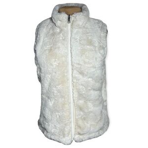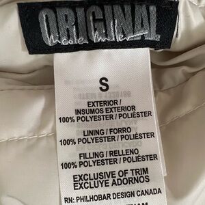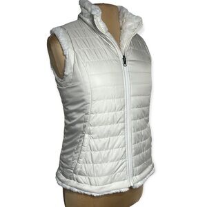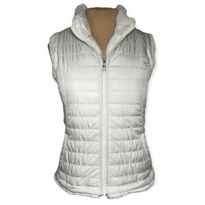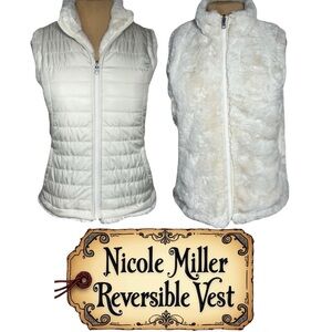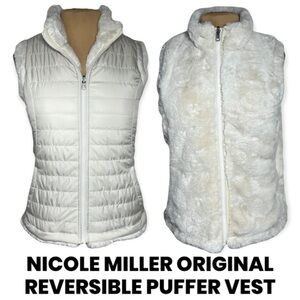 The Nicole Miller Original size S off-white ivory reversible puffer vest is a versatile and stylish outerwear piece. Made from high-quality materials, this puffer vest offers both warmth and comfort. The off-white ivory color adds a touch of elegance and sophistication to your ensemble. What sets this vest apart is its reversible design, providing you with two different styling options in one garment. With its size S fit, it offers a flattering silhouette for individuals with those measurements. Whether you wear it as a standalone outer layer or layer it under a coat for extra warmth, the Nicole Miller Original reversible puffer vest is a fashionable choice that combines practicality and style seamlessly.
