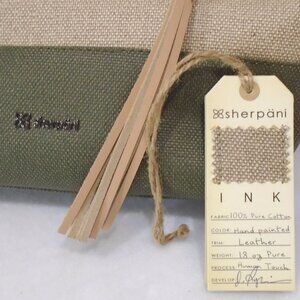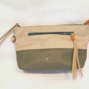 nwot SHERPANI Paige Crossbody/Wristlet Bag Beige/Green Canvas, tags detached/new