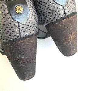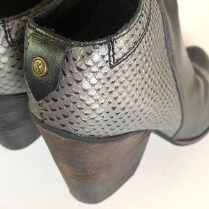 size 38 (US 7) Kaanas leather black ankle booties heel boots reptile back