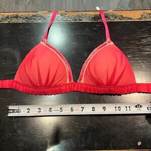 vintage y2k René Rofé Hot Pink Bikini Lingerie Top with Lace & Ruffle Skirt Set – Size 34B/S