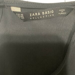 zara womens solid black Crew Neck long bell sleeve top blouse xs.